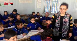 القامشلي-سانا بخبرة طويلة امتدت ثلاثة عقود من الزمن وتطوير مستمر لأساليب التعليم والتدريس تواصل المربية فريال حسن