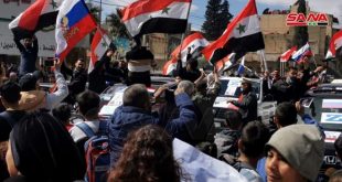 الحسكة-سانا نظمت الفعاليات الشعبية والرسمية في الحسكة تجمعاً شعبياً ومسيراً للسيارات وذلك دعماً لروسيا