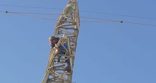 الحسكة-سانا أنهت الورشات الفنية التابعة لشركة كهرباء الحسكة أعمال إصلاح خط توتر 230 ك ف الذي يربط منشأة توليد السويدية