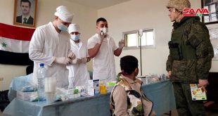 الحسكة-سانا قدم مركز القوات الروسية في مدينة القامشلي اليوم مساعدات غذائية في قرية الوطوطية بريف القامشلي