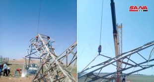 الحسكة-سانا أنهت الورشات الفنية التابعة لشركة كهرباء الحسكة صيانة الأضرار التي لحقت بخط ال66 ك.ف المغذي لمحطة تحويل كهرباء تل تمر والذي تعرض للأضرار نتيجة اعتداءات المحتل التركي