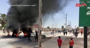 الحسكة-سانا خرج أهالي مدينة الشدادي بريف الحسكة الجنوبي بمظاهرة احتجاجاً على ممارسات ميليشيا “قسد” المدعومة من قوات الاحتلال الأمريكي وجرائمها بحق الأهالي في المنطقة. وذكرت مصادر محلية لمراسل سانا أن “المحتجين طالبوا بخروج ميليشيا “قسد” من منطقتهم ووقف جرائم مسلحيها …