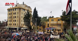 الحسكة-سانا تنديداً بجرائم ميليشيا “قسد” وحصارها الجائر الذي تفرضه على مدينة الحسكة وحيي طي وحلكو في مدينة القامشلي نظم أهالي مدينة الحسكة وقفة احتجاجية مطالبين بفك الحصار والسماح بدخول المواد الغذائية والطحين والوقود والأدوية إلى المواطنين وطرد المحتل الأمريكي والتركي …