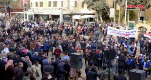 الحسكة-سانا نظم أبناء مدينة الحسكة اليوم بمشاركة كل الفعاليات وقفة احتجاجية ضد ممارسات المحتل التركي وقطعه مياه الشرب عن مليون نسمة في المدينة وريفها الغربي ورفضاً لانتهاكات ميليشيا “قسد” المرتبطة بالاحتلال الأمريكي من خلال محاولاتها التضييق على الأهالي في مركز …