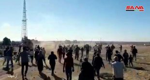 الحسكة-سانا أصيب 10 مدنيين بالاختناق جراء إطلاق عناصر دوريات تركية كانت برفقة الدوريات الروسية الغاز المسيل للدموع على الأهالي الذين خرجوا احتجاجاً على مرورها في منطقة الجوادية بريف الحسكة. وأفاد مراسل سانا في الحسكة بإصابة 10 من أهالي ريف الجوادية …