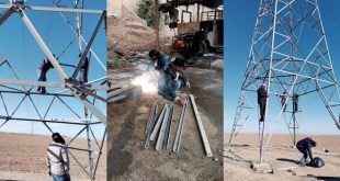 الحسكة-سانا بدأت ورشات دائرة التشغيل في الحسكة بالتعاون مع الشركة العامة لكهرباء المحافظة عملية تدعيم أبراج التوتر الكهربائي
