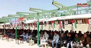 القنيطرة-سانا كرمت محافظة القنيطرة بالتعاون مع مجلس بلدة تجمع مفرق حجيرة للنازحين بريف دمشق 143 أسرة من ذوي الشهداء