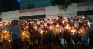دمشق-سانا نظم نادي النصر التابع لفرع القنيطرة للاتحاد الرياضي العام مساء أمس وقفة تضامنية في مقر النادي بمساكن برزة تمت خلالها إضاءة شموع تخليدا لأرواح شهداء جبلة وطرطوس الذين قضوا في التفجيرات الإرهابية الاثنين الماضي. وأعرب المشاركون في الوقفة عن …