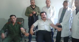 القنيطرة-سانا بمشاركة أكثر من 100 معلم ومعلمة نظمت نقابة معلمي القنيطرة بالتعاون مع فرع منظمة طلائع البعث في المحافظة اليوم حملة تبرع بالدم دعما لجرحى الجيش والقوات المسلحة و تقديراً لتضحياتهم في مواجهة الإرهاب وذلك في وحدة قطف الدم في …