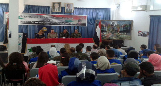 القنيطرة-سانا تركزت ندوة ثقافية نظمها اليوم فرع القنيطرة لمنظمة اتحاد شبيبة الثورة بالتعاون مع الإدارة السياسية في صالة المركز الثقافي العربي لمدينة فيق بمساكن برزة حول الأبعاد الوطنية والاجتماعية والقانونية لمرسوم العفو رقم 32 لعام 2015. ودعا ممثل إدارة القضاء …