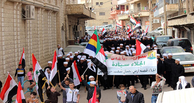 الجولان المحتل-سانا أحيا أهلنا الصامدون في الجولان العربي السوري المحتل ذكرى عيد الجلاء بإقامة احتفال كبير في ساحة سلطان باشا الأطرش وسط بلدة مجدل شمس المحتلة بمشاركة وفود شعبية من قرى بقعاتا ومسعدة وعين قنية ووفد من فلسطين المحتلة. ورفع …