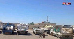 القنيطرة-سانا باشر فرع المؤسسة السورية للحبوب بدمشق باستلام القمح من الفلاحين بالقنيطرة بعد افتتاح مركز مؤقت في السويسة