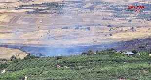 الجولان السوري المحتل-سانا افتعلت قوات الاحتلال الإسرائيلي اليوم حريقاً كبيراً في الأراضي الزراعية والرعوية شرق قرية بقعاثا في الجولان السوري المحتل.