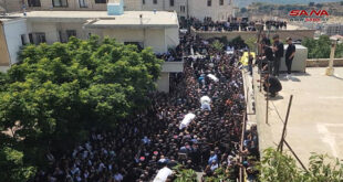 الجولان السوري المحتل-سانا شيع الآلاف من أبناء الجولان السوري المحتل ووفود من الأراضي الفلسطينية المحتلة اليوم الشهداء