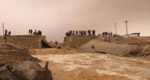 الرقة-سانا أدت الهطولات المطرية الغزيرة إلى تشكل السيول وانهيار جسر الشريدة الواقع على الطريق العام الرقة دير الزور بريف الرقة الشرقي المحرر.