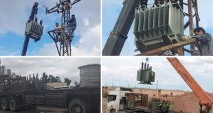 الرقة-سانا ركبت الشركة العامة لكهرباء الرقة 10 محولات جديدة، بهدف تحسين الواقع الكهربائي في ريف الرقة المحرر.