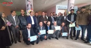 الرقة-سانا كرمت مديرية التربية بالرقة بالتعاون مع المجتمع المحلي عدداً من المعلمين والمدرسين بمناسبة عيد المعلم في ريف