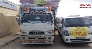 الرقة-سانا سيرت محافظة الرقة من أمام مقرها في مدينة السبخة في الريف المحرر قافلة مساعدات