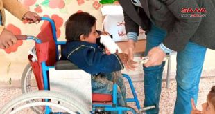 الرقة-سانا رغم ألم جسده الصغير وحاجته إلى كرسي متحرك، آثر محمد رياض العلي أن يقدم مصروفه، الذي عمل على تجميعه لشراء الكرسي