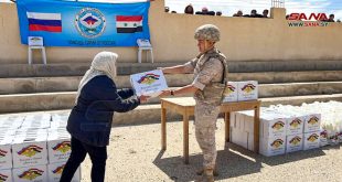 السويداء-سانا وزع مركز التنسيق الروسي في سورية مساعدات إنسانية وإغاثية على أهالي قرية خلخلة بريف السويداء الشمالي.