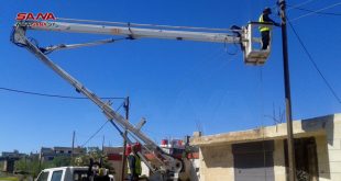 السويداء-سانا عمل متواصل في مختلف الأوقات وأصعب الظروف يؤديه عمال ورشات الكهرباء