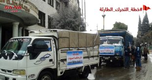 السويداء-سانا انطلقت صباح اليوم من أمام مبنى محافظة السويداء قافلة من ثلاث شاحنات