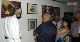 السويداء- سانا لوحات فنية بمختلف التقنيات اللونية ومنحوتات خشبية وبازلتية وأعمال يدوية خشبية ضمها معرض فني