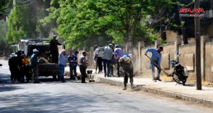 السويداء-سانا نظم مجلس مدينة السويداء اليوم حملة نظافة ضمن موقع حي الشهداء “مساكن القلعة”