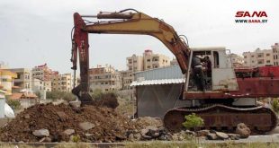 السويداء-سانا بدأ مجلس بلدية الرحى بالسويداء اليوم أعمال مشروع لاستبدال خط صرف صحي رئيسي