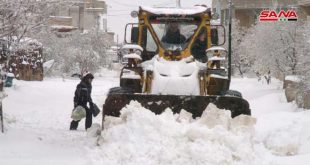 السويداء-سانا بدأت آليات المؤسسات الخدمية بالسويداء منذ صباح اليوم بالعمل على فتح الطرقات الرئيسية