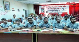 السويداء-سانا اختتمت فعاليات الدورة التدريبية الآسيوية للمستوى دي بكرة القدم التي أقامها اتحاد اللعبة في السويداء بإشراف اللجنة التنفيذية لفرع الاتحاد الرياضي بالمحافظة بمشاركة 31 دارساً من مختلف الأندية. وفي تصريح لمندوب سانا الرياضي أشار المحاضر الآسيوي مهند الفقير إلى …