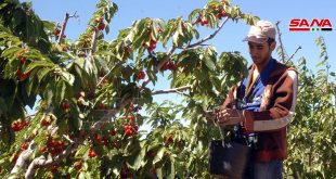 السويداء-سانا بحباتها السوداء والحمراء المتدلية على الأشجار تحمل ثمار الكرز للمزارعين الذين يواصلون جنيها للموسم الحالي في محافظة السويداء أملاً بإنتاج وفير يحقق لهم مصدر دخل لهم يعينهم على أعباء الحياة ومتطلباتها. الكرز يتم جنيه من المزارعين وورش العمل ضمن …