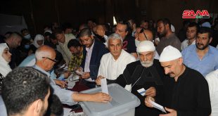 ريف دمشق-سانا تشهد المراكز الانتخابية في أشرفية صحنايا بريف دمشق إقبالاً متزايداً من الناخبين للإدلاء بأصواتهم واختيار مرشحهم لمنصب رئيس الجمهورية وتوزعت صناديق الاقتراع في البلدة على 19 مركزاً انتخابياً. ففي مركز مدرسة الشهيد بسام عزام بين رئيس المركز رستم …