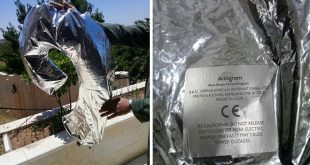 السويداء-سانا عثر مزارعون على بالون حراري صناعة أمريكية ضمن أراض زراعية بين قريتي سهوة بلاطة ورساس بريف محافظة السويداء الجنوبي اليوم وتم تسليمه للجهات المختصة. وأوضح مصدر في قيادة شرطة محافظة السويداء لمراسل سانا أن مزارعين عثروا على بالون حراري …