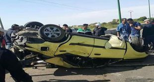 السويداء-سانا توفي شخص عصر اليوم جراء حادث تدهور سيارة تكسي عمومي بين بلدتي عتيل وسليم شمال مدينة السويداء. وذكر مصدر في شرطة المحافظة أن سيارة “كيا ريو عمومي” كانت متوجهة شمالا تدهورت وانقلبت بالقرب من الدوار على طريق دمشق السويداء …