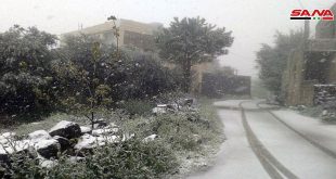 محافظات-سانا تتأثر البلاد بامتداد منخفض جوي مرفق بكتلة هوائية باردة ورطبة يمتد في طبقات الجو كافة وهطلت الثلوج فوق المرتفعات العالية التي تتجاوز 1100 متر , وفيما يلي صور من بلدات قنوات والمشنف ومياماس بريف السويداء وبلودان في ريف دمشق …