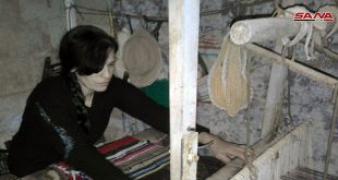 خمسينية من السويداء تعيد إحياء تراث الأجداد على نول قديم