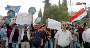 السويداء-سانا أقامت فعاليات أهلية وشبابية ودينية ورسمية من محافظة السويداء اليوم وقفة تضامنية دعما لصمود أبناء الجولان السوري المحتل وموقفهم الرافض للمخططات الإسرائيلية وما تسمى “انتخابات المجالس المحلية”. وأكد المشاركون بالوقفة التي أقيمت في ساحة سلطان باشا الأطرش أمام مبنى …