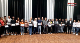 السويداء-سانا كرمت مديرية التربية بالسويداء اليوم الطلاب المتفوقين الحاصلين على المراكز الأولى على مستوى سورية والمحافظة