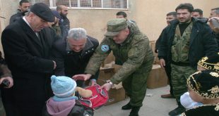 السويداء-سانا تم اليوم توزيع مجموعة هدايا وألعاب وحقائب مدرسية على نحو 300 طفل في قرية أم ضبيب ومحيطها بريف السويداء الشمالي الشرقي مقدمة من أطفال روسيا الاتحادية. وشمل التوزيع أطفالا في الصف الأول بمدرسة الشهيد حمد سلوم الحلقة الأولى للتعليم …