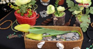 دمشق-سانا تعمل رانيا قباقيبي بحرفة تنسيق الزهور “الطبيعية والصناعية” المهنة التي تعلمتها من تلقاء ذاتها وطوَّرتها