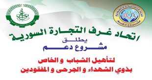 دمشق-سانا أعلن اتحاد غرف التجارة السورية إطلاق مشروع دعم لتأهيل الشباب من الجرحى وذوي الشهداء في دمشق وريفها