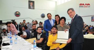 دمشق-سانا كرمت محافظة دمشق بالتعاون مع مشروع جريح الوطن 46 جريحاً من الناجحين والمتفوقين