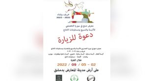 دمشق-سانا على هامش فعاليات المؤتمر الأول للاتحاد العربي للأسر المنتجة والصناعات الحرفية والتقليدية