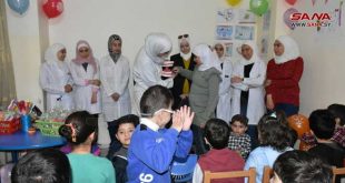 دمشق-سانا نظمت كلية طب الأسنان بجامعة دمشق قسمي طب الفم وطب أسنان الأطفال اليوم حملة تطوعية استهدفت الأطفال من ذوي الإعاقة