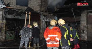 دمشق-سانا أخمد عناصر فوج إطفاء دمشق بعد منصف الليل حريقاً نشب ضمن مستودع خشب بمنطقة بوابة