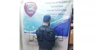 دمشق-سانا ألقى عناصر فرع الأمن الجنائي في الحسكة القبض على شخص ألقى قنبلة على منزل صديقه في المدينة أدت إلى وفاة امرأة وإصابة ابنتها. وذكرت وزارة الداخلية على موقعها الإلكتروني اليوم أن “فرع الأمن الجنائي في الحسكة ألقى القبض على …
