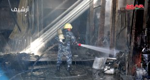 دمشق-سانا أخمد عناصر فوج إطفاء دمشق فجر اليوم حريقاً نشب ضمن منشرة مع محل لصناعة الأحذية مقابل فرن المصري في باب سريجة ضمن خان السريجة بدمشق. وبين العميد داوؤد العميري قائد فوج إطفاء دمشق في تصريح لمندوبة سانا أن زمرة …