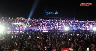 دمشق-سانا نظمت مجموعة من الفعاليات الاقتصادية اليوم في مدينة الجلاء الرياضية حفلاً فنياً جماهيرياً أحياه نخبة من نجوم الغناء بمناسبة أداء الرئيس بشار الأسد القسم الدستوري وعيد الجيش العربي السوري. وتخلل الحفل الذي أحياه الفنانون جورج وسوف وشهد برمدا وناصيف …