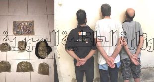 دمشق-سانا ألقى فرع مكافحة المخدرات بريف دمشق القبض اليوم على ثلاثة مروجين وصادر منهم سبعة كيلوغرامات حشيش مخدر. وذكرت وزارة الداخلية في بيان تلقت سانا نسخة منه اليوم أنه وبناء على المعلومات الواردة إلى فرع مكافحة المخدرات بريف دمشق حول …